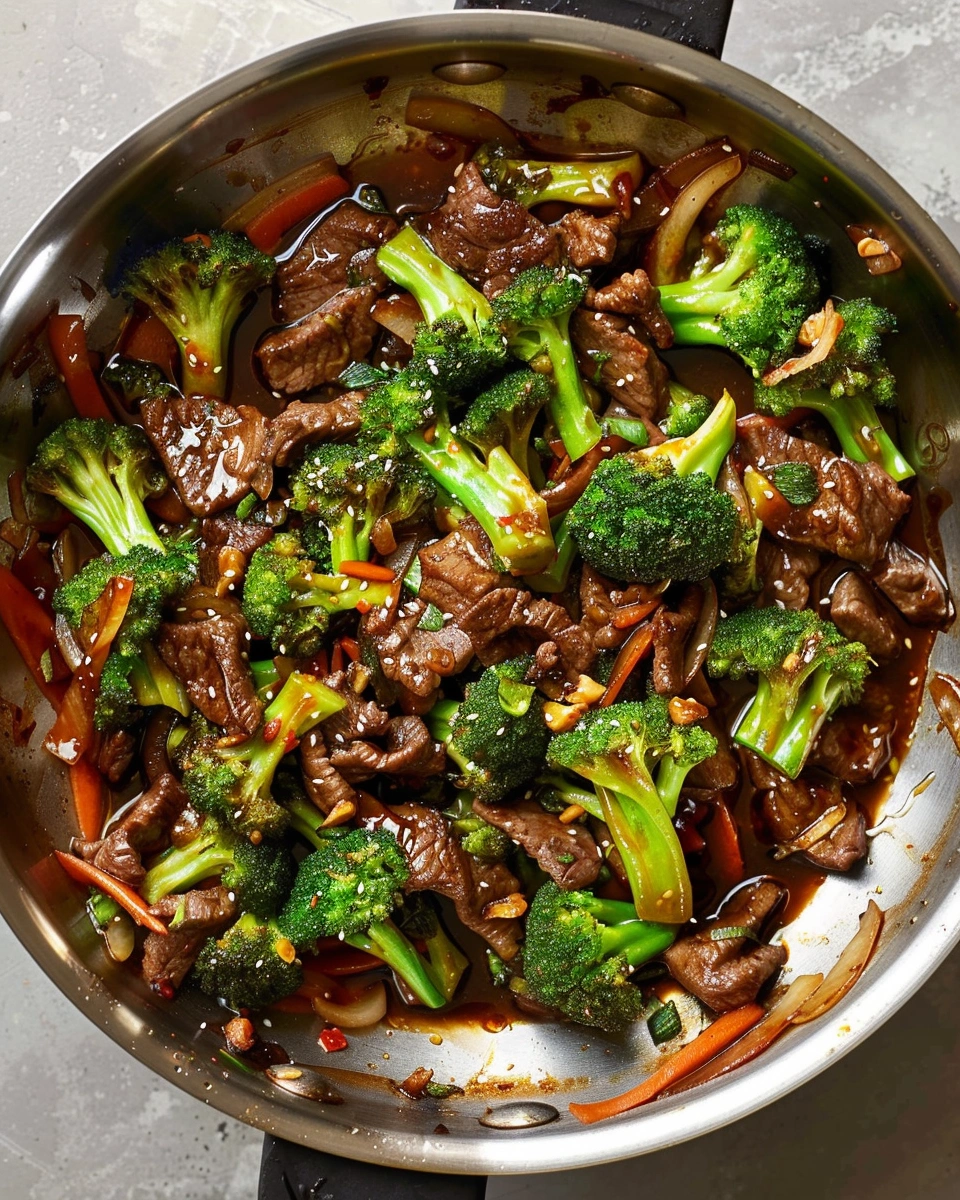 - Return beef and broccoli to the pan; toss 1–2 minutes until sauce thickens and coats evenly.