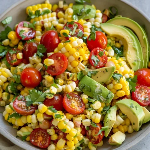 I’ve made this salad more times than I can count—especially in warmer months when you want something light but still satisfying. The combination of crisp corn, ripe tomatoes, and creamy avocado with a bright dressing is simple, but it just works every time.