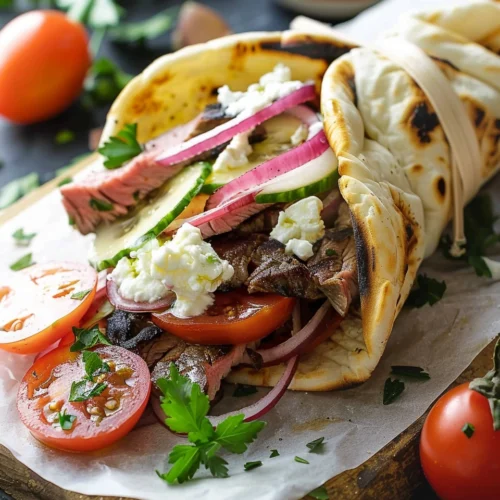 Ever crave a bold, street-food-style meal but don’t want to leave home? These grilled skirt steak gyros bring all the flavor of your favorite gyro stand right to your kitchen. Juicy, smoky steak wrapped in warm pita with fresh toppings—it’s hard to beat.